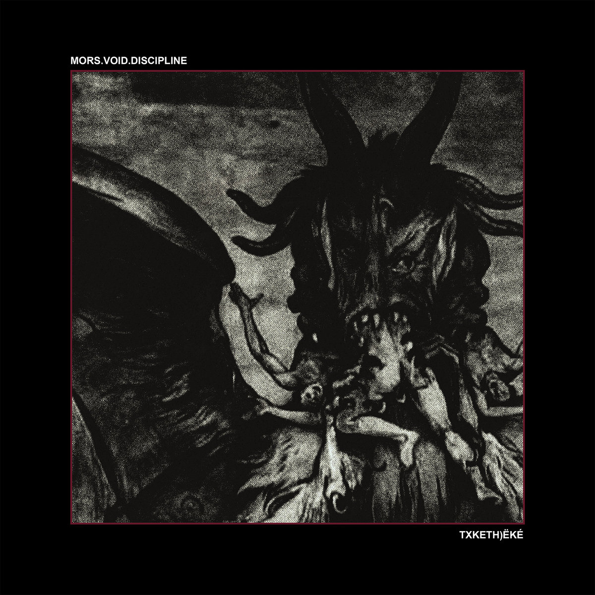 MORS.VOID.DISCIPLINE emerge from the bottomless dungeons of South America's extreme metal underground with their debut full-length monstrosity "Txketh)ëké", a twenty-minute obfuscation of terror-spawning bestial war metal destruction swathed in the flesh-eating violence and maggot-infested putridity of 90's goregrind. Cryptic and malignant beyond thresholds comprehensible to man, "Txketh)ëké" projects forth a cancerous aural perversion in which the war-mongering assaults of Blasphemy collide with early Carcass' mangled and deconstructed sonic butchery. Its astonishing hideousness and violence are not only shaped by its unequivocal descendancy, but further complexed by the peculiar antediluvian and occult aura historically permeating Chile's underground scene, as well as by the band's enigmatic inner workings and imagination harvesting perversions from beyond the reach of sanity. Slithering coils of vomitous, pitchshifted vocals proclaim the unutterable in arcane tongues long forgotten by men, regurgitating a noxious mass from within a hellish cauldron of dissonant, nuclear vice, and invoking absolute adherence and submission to a cult of death and darkness untouched by any light. The album's title is an anagram of words related to Solomon's demonology and multicultural esoteric warfare, and the band's concept and lyrics metastasize within the terrorscape as a deranged worship of evil reclaiming sacrifice through the destruction of human anatomy. Few crafts conglomerate in human mind as entities so committed to cruelty and devoted to destruction as this one, yet MORS.VOID.DISCIPLINE endure as yet another inscrutable product of an unrivaled scene whose isolation, remoteness and purity remain undying vectors for unparalleled world-building and musical transformation.